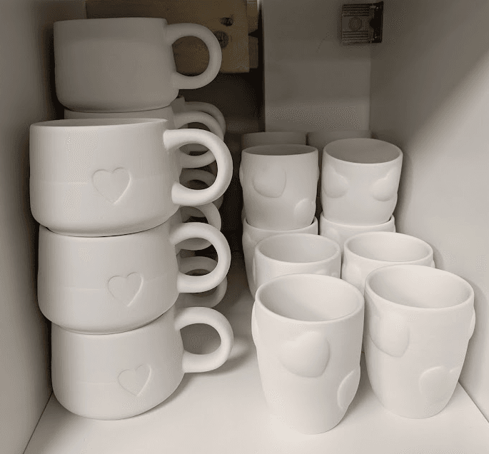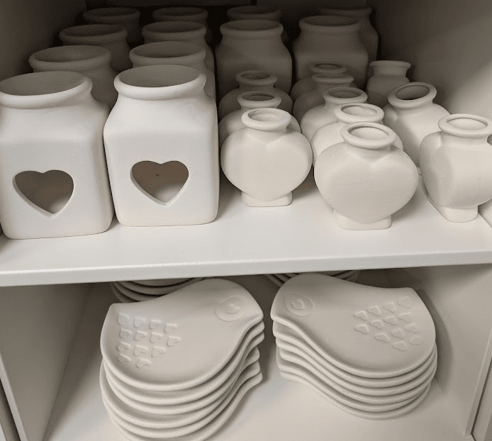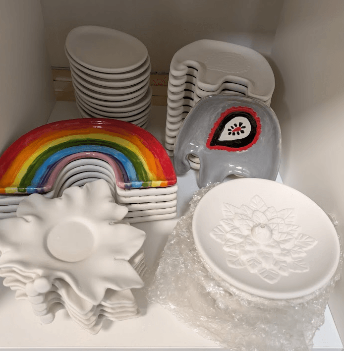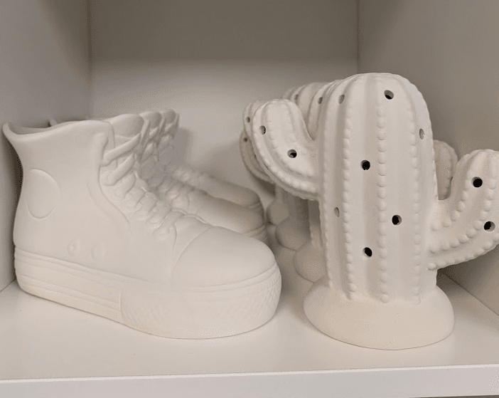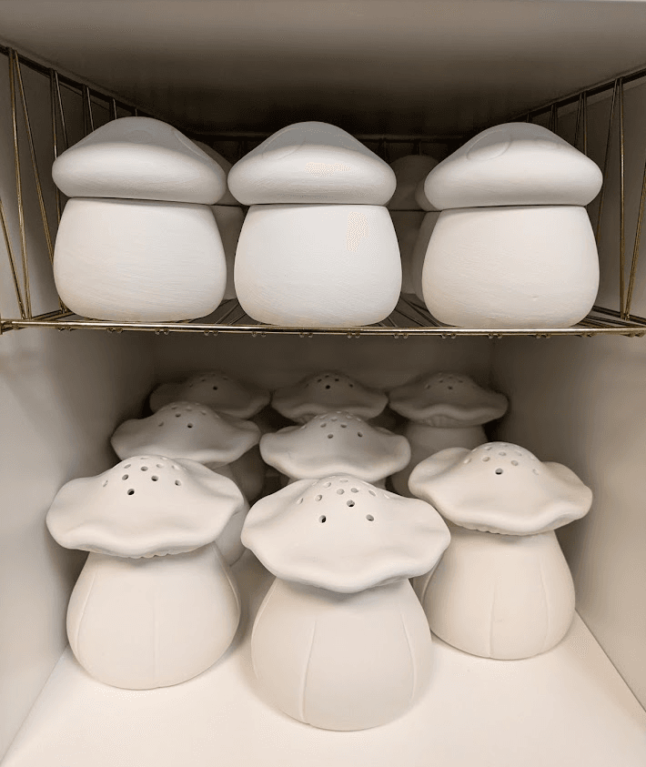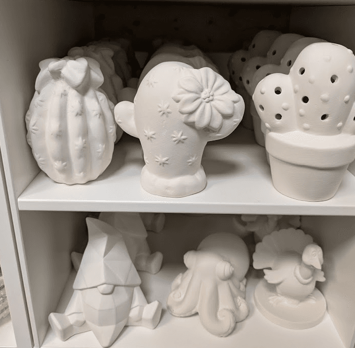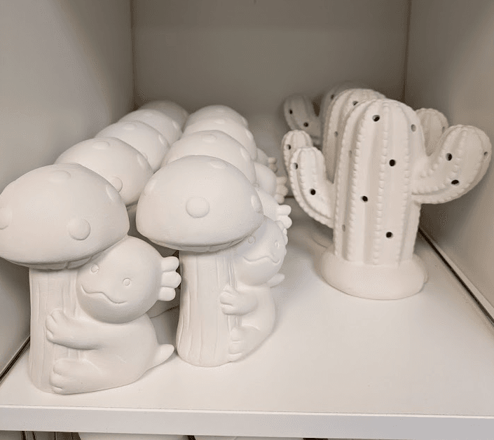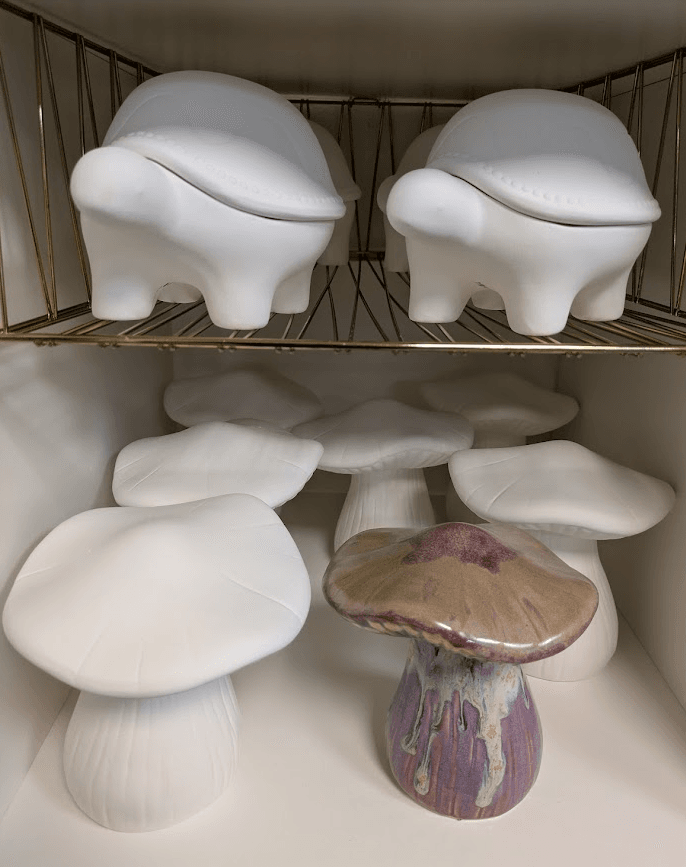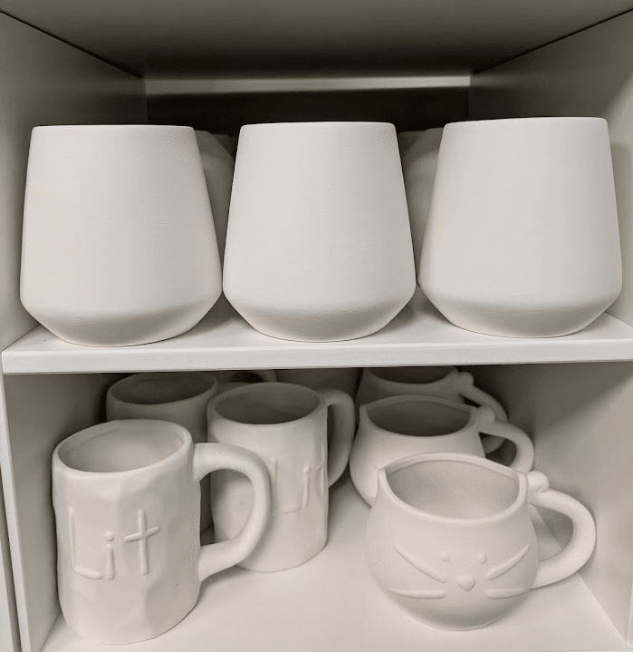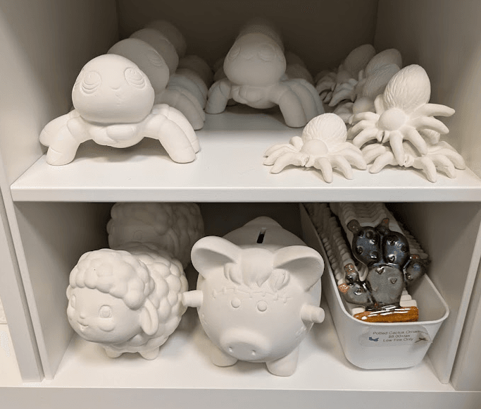 Prices range from $3–$30, with most pieces landing in the $15–$25 sweet spot. We also offer two types of bisque to glaze: low-fire for bold color and detail, and high-fire for richer tones and natural variation. Different vibes, same creative joy.