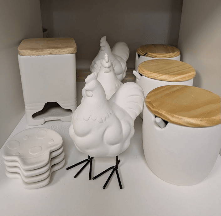 Pick from a wide variety of bisqueware shapes and sizes, glaze it your way, and let the kiln do the rest. No experience needed. Just choose, paint, and watch your masterpiece level up from “cute” to “kiln-fired glory.”