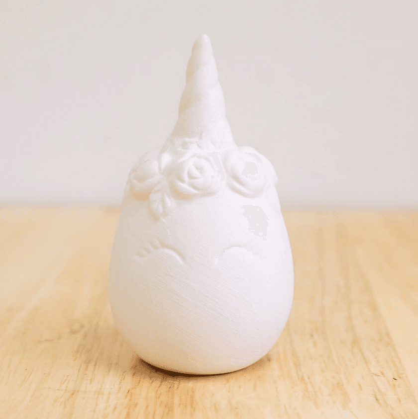 Whimsy meets wonder with the Eggicorn—a magical egg complete with a unicorn horn! This adorable piece is perfect for playful glazes, pastel rainbows, or bold, fantastical designs. Whether you’re glazing cute or quirky, the Eggicorn is ready to hatch some serious charm.