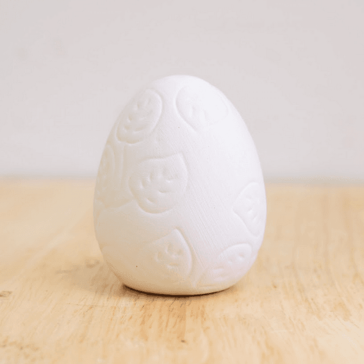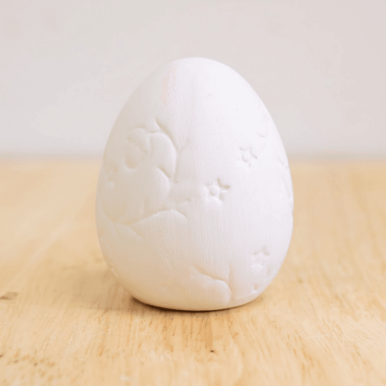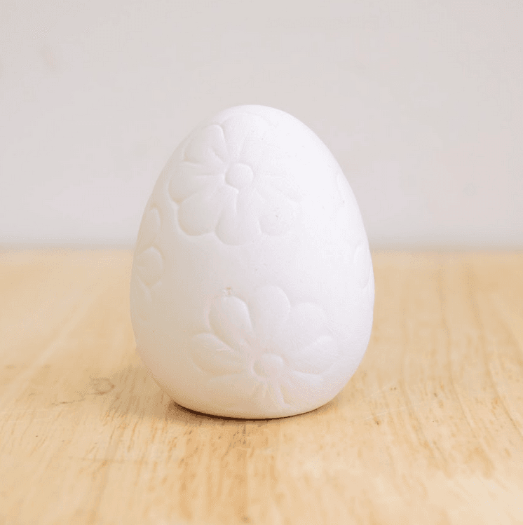 Not your average egg! This one’s all dressed up with built-in texture—ready to be glazed in glorious spring colors. Whether you go pastel perfection or neon chaos, we’ll fire it in the kiln so it’s ready to strut its shell-stuff. Perfect for baskets, décor, or confusing the Easter Bunny.